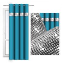 Závěs na řasící pásce se zirkóny 140x250 cm tyrkysovo modrý