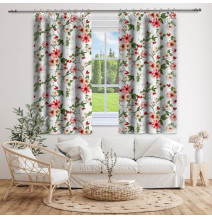 Tenda con nastro 140x250 cm beige con fiori grandi