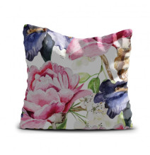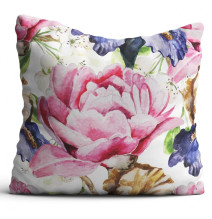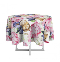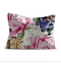 Tenda su anelli 140x250 cm bianco con fiori rosa