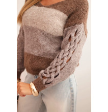 Dámsky pruhovaný sveter s vrkočmi hnedý Made in Italy