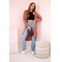 Dámsky sveter dlhý kardigán MI2019-2 pudrovo ružový