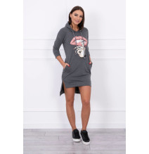 Šaty s predĺženou zadnou stranou a farebnou potlačou v predu MI64632 grafitové