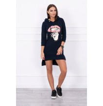 Šaty s predĺženou zadnou stranou a farebnou potlačou v predu MI64632 tmavomodré