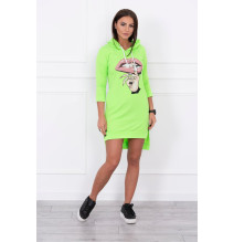 Šaty s predĺženou zadnou stranou a farebnou potlačou v predu MI64632 neónovo...