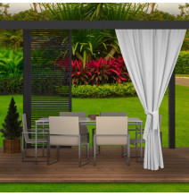 Záhradné obrusy sú odolné voči nepriaznivým poveternostným podmienkam, ako je dážď, nízke alebo vysoké teploty. Materiál na slnku nevybledne a farba zostáva nezmenená. Hladký obrus má nepremokavé vlastnosti. Vďaka tomu tekutina vyliata na povrch vytvára ľahko zbierateľné kvapky. Toto je obzvlášť dôležité pri organizovaní párty alebo grilovačky, keď je obrus vystavený zafarbeniu. Elegantne upravené okraje dodávajú látke štýl.